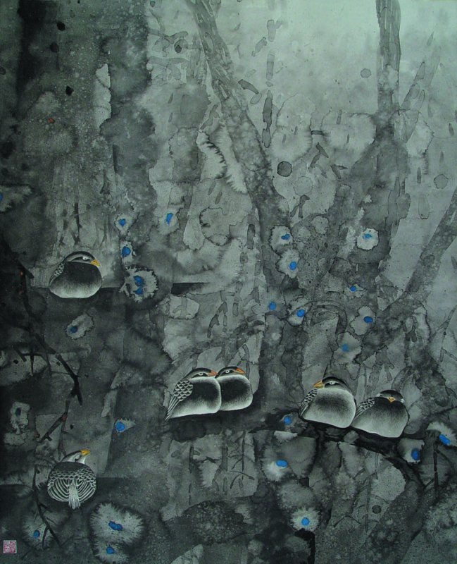 《玉露幽禽》入选全国第二届中国花鸟画展览