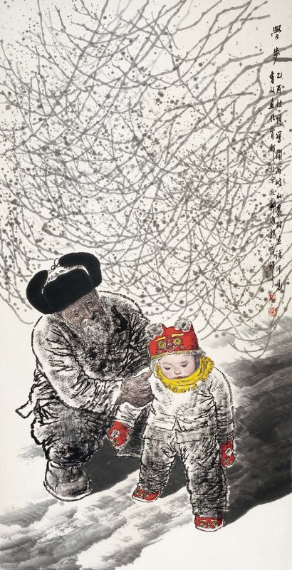 王有政的人物画带给人们的审美快感,不同于精巧、秀雅、华丽的优美,也不同于粗犷、雄奇、辉煌的壮美,他的作品往往呈现出一种朴素、自然、实在、质朴的美感。他所描绘的常常是北方农村人与人之间的亲情与温暖,画面常常洋溢着祥和、安宁、朴素、浓郁的乡土气息。