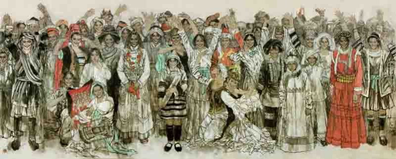 他以反映时代精神和讴歌人民为己任,在坚持中国人物画的写意传统和笔墨精华的同时,注重人物的精神气质和个性化艺术语言的提炼,使自己的艺术更深刻的表现现实生活。狄少英曾多次赴川西、甘南、青海等地采风。在那里,白云碧天下的莽莽草地.银雪皑皑的千里岷山,金顶闪闪的喇嘛庙,迎风招展的经幡,时时拨动着他的心弦,但最令其振奋的还是那里的人群,被高原上的风、高原上的雪雕斫着的人群。他们有棱有角,健康雄引,质朴善良。面对他们。狄少英的灵感在迸发,灵魂在净化,燃烧的激情驱使着他手中的画笔,随心所欲,任意驰骋,用娴熟的笔法、个性化的思维表现这一人群的精神世界。作品中的人物形象很生动。也很自然,使人看后有一种亲切感,观赏者和画中人物有—种无言的沟通。