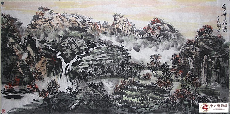 看上去刘菊温和秀美,但一交谈,就能感受到她骨子里的执着豪爽。已过花甲之年的刘菊,学画只有8年,画出的画浓墨淡彩,十分大气,颇有河北山水画领军人物白云乡太行山画派的画风。