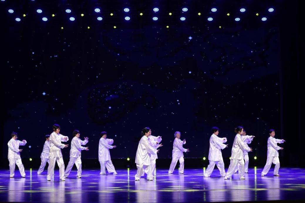 《武当九式》西上园太极拳队 本次健身操表演在后南仓表演队精心编排的《中华响扇》中拉开序幕,动作严谨细致、舒展大方,尽显中华悠久文化内涵;金地格林舞蹈队的《请到长城来滑雪》以青春动感的舞蹈,展现了作为冬奥东道主的高涨热情;西上园太极拳队的《武当九式》将太极拳的精华演绎地淋漓尽致;新华街道如意社区的《同唱祖国好》、女人花舞蹈队《盛世欢歌》以及郎清园北社区的《五星红旗迎风飘扬》以婀娜的舞姿和昂扬的激情,抒发了内心的自豪感和对祖国的无限热爱;最后,在运河滨江社区标准流畅、刚柔并济《28式太极》中,通州区群众健身操演出画上圆满句点。