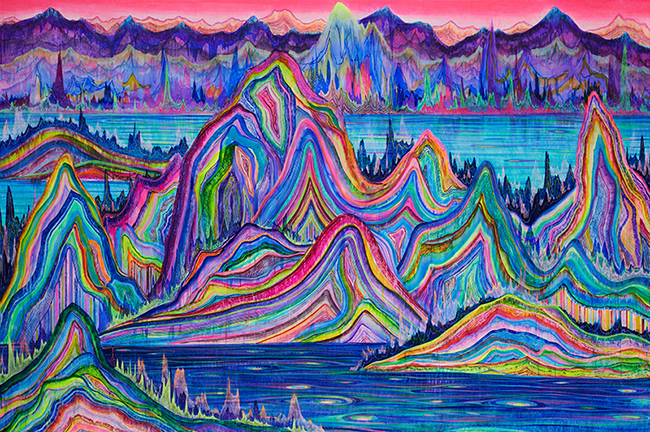 黄宇兴《日照金山》 压克力画布,2018-2019年作 200 x 300 公分 估价:3,000,000 - 5,000,000港元 黄宇兴是现今中国当代艺坛上最广为人知的艺术家之一,超现代的荧光色和富有象征意义的主题别树一帜,在国际艺坛备受赞誉。他的作品将于今年四月在香港苏富比当代艺术晚间拍卖登场,并于上海和北京巡回展出。黄宇兴的作品色彩斑斓明亮,而且消弭了风景画与抽象画的界线,引领观者进入超现实的迷幻宇宙。这幅画创作于2018至2019年,尺幅庞大,长200公分,阔300公分,缤纷绚烂的醉人风景全然占据着观者的视野。