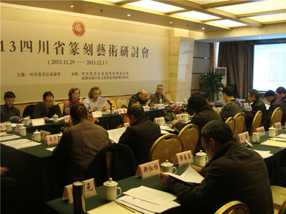 11月30日下午,由四川省书法家协会主办,四川省书法家协会篆刻委员会与成都市温江区文化广电和新闻出版局共同承办的2013四川省篆刻艺术研讨会在成都市温江区君临国际酒店召开。来自四川省各地市的50余名篆刻重点作者和相关艺术专家朋友参加了大会。会议由四...
