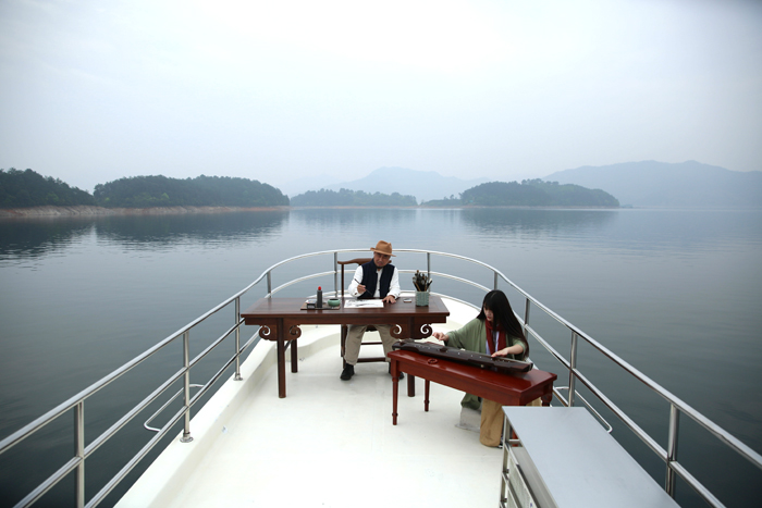 2016年4月春暖花开之际,著名画家叶岚的行为艺术《移动的画案》从安徽的黄山顶上移至浙江的千岛湖上,途经美丽的富春江、新安江并邀请了数位江南才女共同漂流在如影如幻的青山绿水之间,吟诗作画、抚琴吹箫,共同完成了古意风雅,绿色环保的行为艺术。![]() "画案移到哪,哪儿就是家"画家叶岚打破了"家"的概念,将画案从家中搬入大自然中去感受地球脉博,倾听地球声音,身临其境与大自然对话并将普通意义上的写生、采风上升到行为艺术的高度。逍遥自在、放浪江湖,所到之处令人关注,其过程与情节本身就是一道美丽的风景。 叶岚作品欣赏 ![]() ![]()