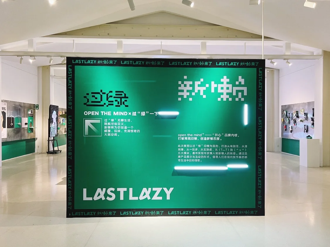 图为新懒主理人Chanel、泊空间主理人June与新懒A宝的合照 本次展览主要展示了新懒渣渣鞋、渣渣袜、YOYO包、大洞T恤、运动挎包等产品,通过全面展示产品的创作与制作过程,传达了“open the mind”-“开心”的品牌理念。品牌期望借助此次展览的契机,为城市生活中的人们提供一种新的生活思路,即在忙碌中回归对于惊奇的发现。 过“绿”之旅从2020年7月17日开始,到7月31日结束。