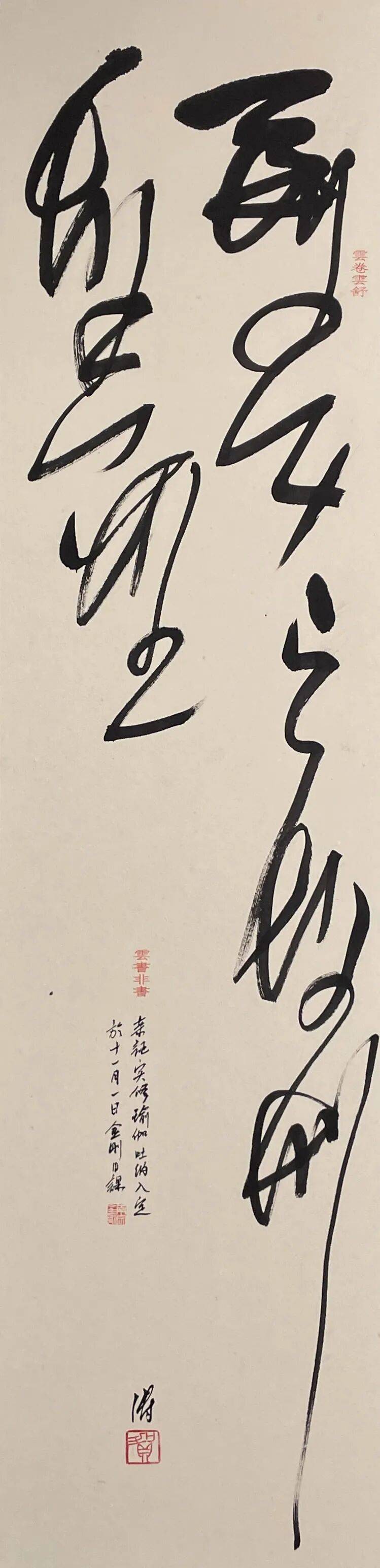 天書非書 序 言 書法無!天書非書!此書非書法之書,是修行人以線練炁之乱書!是吐納之術之呈現!此是天書第七個百日之幾幅習作,吐納之吐破50秒,吐納之納破二分五秒,金剛梵音已碎三块玻璃!追求極致何常不是我執?追尋虛實轉換破解人生之精彩何嘗不是貪念?無論儒之大智慧、佛之大光明、道之西天月、玄之摩尼珠均需淨心靜心! 靜至極致方成,在丹田絞痛兩日后!方破执念!今始修行及學術上正式進入松馳感!學術不再苛求百日築基,修行不再苛求人生極致!充足的睡眠和深度冥想是最好的修行相信聽話照作松弛感即是最上乘之功! ——逸云金刚·贺海涛 2025.4.9 天书非书第七境——长卷十幅