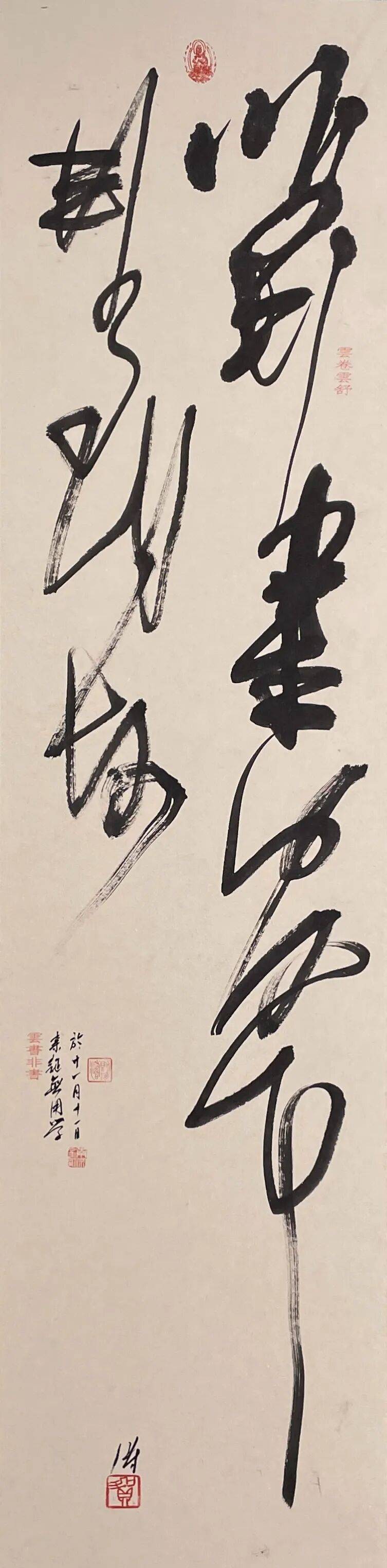第七境三阶十七日 書法 “無” | 天書非書 | 涛書 | 第六境日课精选 天书 非书 序言 此书非书,此线非书!仅是亲证无用学!无用之用是大用,无学之学是大学!无我无目的地死干亲证修业修身修心修神修魂!只内观不外求!此第六境百日筑基日课,仅是以线练手以修心。 心起于当下止于当下,破除以往不盼未来,以炁入笔,以线练炁,笔随炁走,意随线行,不求字意仅取其势取其形,非正常正规书法之态,希书家不吝赐教,希儒释道之同修多点拨之! ——逸云金刚·贺海涛 2024.11.30 天书非书第六境——长卷 18幅