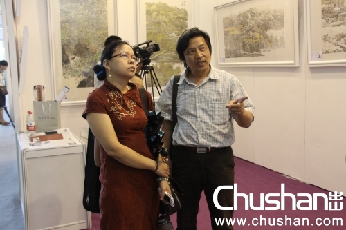 李建设老师给朋友讲解参展作品