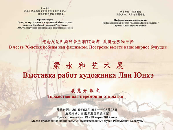 展览背景 主办单位:中华人民共和国文化部中外文化交流中心 白俄罗斯共和国文化联盟 承办单位: 书画 圈网 媒体支持:民主与法制时报 展览地点:白俄罗斯国家美术馆 展览时间:2015年3月19日3月28日 展览介绍: 有一种信念叫永和,我们希望永不言败 和谐进取...