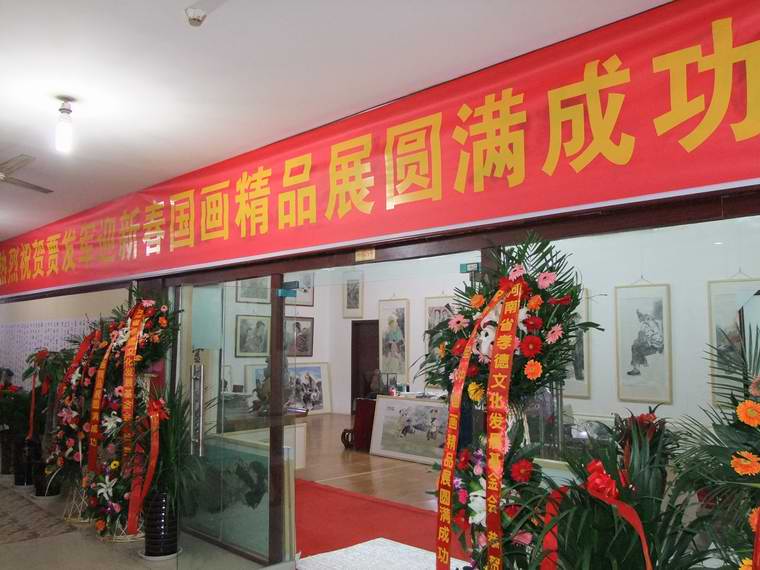 展厅门口 2014年12月28日上午10时,由郑州市美术家协会、豫皖情文化艺术中心、郑州市第七十四中学联合主办,宏远经典水墨经纪中心承办,豫皖情艺术馆、徽艺轩画廊、河南传美印刷有限公司、浩风堂书画艺术馆共同协办的贾发军迎新春国画精品展在宏远经典画廊开...