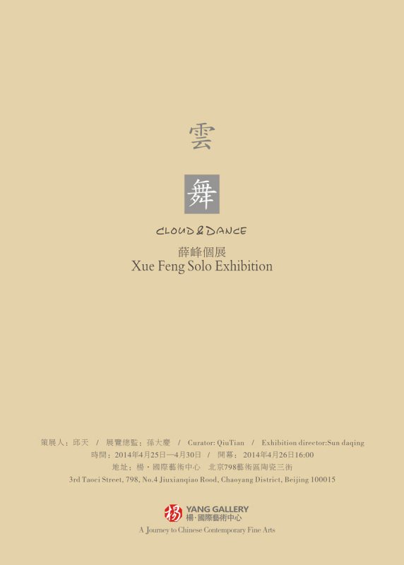 云舞--薛峰个展将在2014/04/25~2014/04/30杨.国际艺术中心举办。 在喧嚣与躁动的中国,人们习惯性的与拥堵、雾霾、突发事件和政治故事进行博弈、思考和共处,都把逃避挂在嘴上,但是这块神奇的热土一直以她无比的魅力深深地吸引着我们,谁也不可能真正的离开...