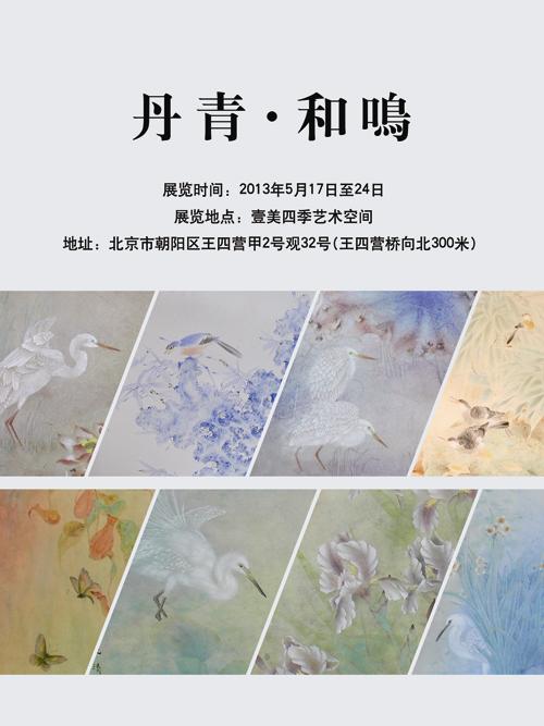 谢敦毅吴丽咏展览海报 主办单位 :北京壹美四季文化传播有限公司 承办单位 :壹美四季艺术空间 协办单 位:徐悲鸿画院学术院 展览时间 :2013年5月17日2013年5月24日 展览地点 :壹美四季艺术空间 届时将展出 谢敦毅 和吴丽咏工笔花鸟及书法等作品40余幅。此...