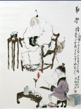凡人物画,张翔洲先生似乎均有涉及:古人今人、工笔写意、高士仕女、版画速写。 其描真图,惟妙惟肖,栩栩欲活,绘声绘色,可乱楮叶。这些人物,皆现实中的活现。市井中的小民,喜怒哀乐形于表,柴米油盐役之骸,或街坊邻里,或亲朋好友,表现熟悉,比之不熟悉,更为难当,也最易评判。其作全然西画理念,透视阴影俱备,若不见衣帽配景处的写意笔触、边角空白处的题款钤印,竟不相信水墨也能有如此的精确纯粹,不失毫厘。久不见这样的作品了,“文革”时期,类似的画幅曾很多,《延安新春》、《矿山新兵》、《控山不止》、《红太阳光辉暖万代》中的高大全、红光亮形象,今天看来都属于描真式的图像。绘画市场化之后,此类费时费工、千难万难之作便越来越少了。张先生学画之时,正是类似作品盛行之际,似乎潜有一种情绪在其间,但这还不是最主要的,描真法需扎实牢靠的造型功力,即应物象形之准。西画理念,图画手法,乃此等绘画之特点。素描与笔墨之结合,在蒋兆和们的提倡下,盛行久矣。他的一幅蒋先生造像,仙风道骨,玉树临风,表达的就不仅仅是一种崇敬了。有人说国画里没有现实主义,非也,张先生不就是个例外。 他笔下的古典人物多遗身物外、傲世出尘的高士,其《养生系列》中的长者,美髯皓须,一片冰心,或对弈,或抚琴,或煮茗,或吹箫,通脱恬淡,拄笏看山。其《冷香图》中的唐女,婀娜绰约,风致娟好;其《词人李清照》中的李清照,多愁善感,人比菊瘦;其《钟馗驱邪图》中的钟馗,努目圆睁,凶神恶煞;其《弥勒佛》中的弥勒,慈眉善目,大腹便便。其用笔毅然没有了描真图式,代之以写意泼渲,且有如椎划沙、力能扛鼎之魄,纵横纷披、沉着痛快之象。布置一隅,不见繁缛,笔笔实,却又笔笔虚,虚则意灵,灵则无滞,迹不滞而神气浑然,不待拘谨而论形似也。“用笔宜活活能转,不活不转谓之板。活忌太圆板忌方,不方不圆翕且张。”信矣。 虚灵恰是其气韵所在。作书作画,无论老手后学,先以气胜之者,精神灿烂,出之纸上。静气清气、灵气逸气,画之大局,以气为主,使转所以行气,气得则形随之。外在物象之空寂宁静,皆基于画家内心之淡泊宁谧,作品中的人物虽说是古贤,却是画家人格形态高韵深情、坚质浩气之借喻,画家与画主之间因感应交合所渐臻的达其性情、形其衰乐氤氲状态,不就是孔子所言“游于艺”的境界。画乃心画,书画之妙,当以神会,得心应手,意到便成。画以简约为尚,简之入微,则洗尽尘滓,独存孤迥,烟鬟翠黛,敛容而退矣。张先生笔下,古人今人有着截然不同的面貌。 昔人论作书画,以“脱火气”为上乘。如人处世,绚烂之极后往往归于平淡。所谓“脱火气”,非学问不能为。古人“读破万卷,下笔有神”,谓之诗有别肠,也非学问不能为。作画何不然,挥毫弄墨,霞想云思,兴会标举,真宰上诉,则似肖妙悟,凡字画诗文,皆天机浩气所发。然其所以悟者,亦有书卷之味,沉浸于胸,偶一操翰,涌泉而来。若胸无点墨,终徒得其迹象,虽悟而犹未悟也。张先生于书画外,文字功夫也不浅,时有妙文面世。唐伯虎乃周臣学生,世人问何以弟子逾老师,周臣对曰:“比我多读了几本书”。这句话暗合了唐志契云“作画以气韵为本,读书为先”之意。张先生的过人之处何不然。(介子平) ![]() 名家评论张翔洲 翔洲是天赋加勤奋的青年画家,他的作品赋予真情实感,充满人性的温情,其用笔用墨洒脱自如,形象严谨生动,做到了以形写神的境界。 ---力群 他的作品中处处流露了苍凉、悲壮、苦涩、肃静,而又令人难以割舍的黄土情结。他以独特的绘画语境,吸取传统水墨之底蕴,营造了一方形与色的艺术世界。期间困惑与梦幻交织,悸动与冥想相克,亢奋激越与沉沦静穆同步。骚动不安勤奋好学的遗传因子,也时刻左右着他人格的物化。 -----芦芽子王建华 翔洲的作品能收能放,既有精微的刻画与研究分析,也能作奔放,抽象,写意的水墨,跨度较大。 ------汪伊虹 翔洲坚持师造化,经常深入生活。不断增进对生活的理解,不断积累创作素材,全身性地投入国画的研究与实践。他既能在绘画上领悟生活,对传统艺术和现代生活有所融会又能在国画的继承和发展上有所探索和追求。 -----王朝瑞 古装人物画其实是对画家的一种严峻考验,因为它要求画家要有穿越时空与古人交流的能力,这样才能够完美地表现出古人的精神和气质。张翔洲的画作既是一例。 ------ 鉴赏家萧平 笔墨的造型能力早已被无数艺术家所证实,而笔墨对艺术家主观直接的表现也同样高效。张翔洲的人物画创作在塑造典型形象的同时也将自我的内心情感世界流露在了画面中。 ------策展人余根晖 情溅高杯醉态真,铺 毫布彩写精神。师承王氏生花笔,一线牵出天地春。 -------郭齐文 张翔洲师法徐渭的清脱潇洒,八大的精微简约,石涛的恣意天趣,任伯年的别具匠心,专注探求于东坡悲喜坦然的诗人情怀,李白超越世俗的禅意,达摩凤凰涅槃般的艰辛与快乐,八仙神思飘然的虚灵境界,创作出了《孔子行教图》《关羽夜读图》《三老养心图》《屈子投江图》《李白醉月》《东坡观砚》等一大批力作。 ------文远 画以简约为尚,简之入微,则洗尽尘滓,独存孤迥,烟鬟翠黛,敛容而退矣。张先生笔下,古人今人有着截然不同的面貌。其描真图,惟妙惟肖,栩栩欲活,绘声绘色,可乱楮叶。 ---------- 介子平 翔洲的人物画题材广泛,不管画什么,