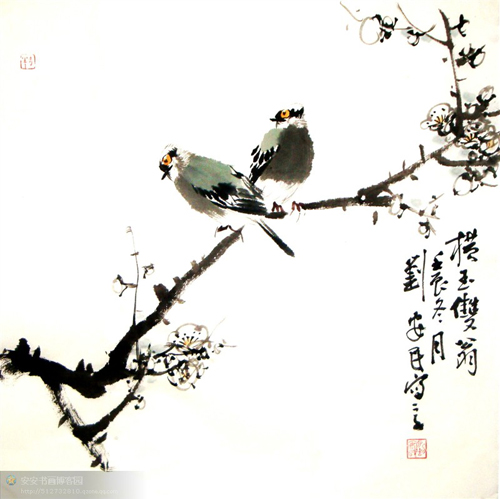中国花鸟画历史悠久,在唐代已相当成熟,经五代直至宋元,花鸟画与山水画一样逐渐成为中国绘画的主流。花鸟画家历代辈出,如唐代的薛稷、边鸾、黄筌、徐熙,宋代的赵昌、崔白、吴元瑜、吴炳、林椿,元代的赵孟頫、李衎,明代的陈淳、徐渭,清代的八大山人、恽寿平,近代的吴昌硕,当代的齐白石、李苦禅等,皆一代名手,绵延不绝。 而刘安民先生则是国画大师李苦禅的再传弟子。