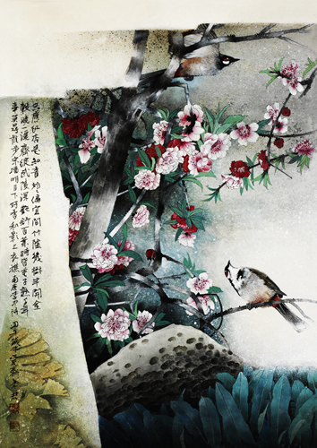 ![]() 1、关于兼工带写 现代工笔重彩画是在传统工笔画和现代文化审美条件下发展产生的一种新的画种,现代工笔重彩要画出好格调,有气韵、有内涵,突破传统工笔画的模式,做到既有古意和文人雅趣,又有时代潮流和紧跟时尚的的一面,的确是不容易的。所以,我选择了在写意画中有表现工整细致的部分,在工笔中亦用恣意挥写的笔墨和线条去表现物象,这或许就是人们俗称的“兼工带写”吧。学画之初,我其实是从画写意画开始的,当时也并不知道什么叫工笔画,后来觉得可以把西画的某些元素融合到我画里来,一下子让我的作品在视野、格局中产生了很多变化,也打开了思路。我的创作历程经历从大写意,到小写意,到没骨,到工笔重彩,最后回归到兼工带写五个阶段。我想,一幅好的兼工带写作品,它应该也是形神兼备,见笔墨、见功力、见性情,雅俗共赏的,并在不经意之处往往起到“画龙点睛”的效果。从色彩与水墨,到双勾与泼写,再到细画与粗画的有机统一,细笔与粗笔、写意与写实的综合,无不体现着一个“兼”字的魅力。我认为一名优秀的工笔画家,不仅仅要精于勾勒填色,也要善于水墨直写。我曾从事文学创作多年,故十分注重画面中的抒情性、节奏感、韵律感的表现,这应是我追求的一种境界。抒情境界的创造是为追求生命的真实,文学的寂怀,精神的气质,正所谓“落花无言,人淡如菊”,在花开花落之间,犹如风来,犹如风去,犹如生命之烟蓼叠翠,犹如画面中声色相容,情境悠然。 ![]() 2、关于“藏” 近年来,我发现中国画中的“藏”,是一门很深很有意思的学问。中国画历来注重藏、不重显,注重涵、不重露。中国历代诸多大师也是“深藏不露”之高手,如我们最耳熟能详的任伯年,我们见其作品,不是禽鸟藏于花草树木之间,就是人物花草藏于山石之后。我们再看张大千所绘之荷花,不是花藏叶之后,就是叶藏花之后。我认为不显山露水、藏巧于拙、用晦而明、寓清于浊、以屈为伸是一种高贵的涵养,当然,我们也不故作高深。我认为藏比露美;藏比露更富深意;藏比露更富想像空间;藏能让人浮想联翩,露却让人一览无余。黄宾虹说,画求内美。而明代山水画家恽向,作品本惜墨如金,挥洒自如,妙合自然,其作品在一次被人称赞之后,恽向却将此画带回撕毁,因为无处隐藏的笔墨和技巧,一览无余的被众人看透,觉得实在太过肤浅了。 由于性情使然,我也总是在“藏”字上面做些研究,其实读者在我的作品中已能读出一二了。我所理解的“藏”,除了上述因素外,还有笔墨的“藏”,要求锋藏于笔中,且笔墨内敛不张扬;色彩的“藏”,要求色彩厚重、和谐不浮躁。“藏”就是退,以退为进方为上;“藏”就是谦虚,是低调的豁达。“藏”是韬光养晦,用在一时之前必有养兵千日,在必要时却又可以一“露”惊人。有次与著名诗人、书法家盛景华先生对话畅聊,景华兄说我画中有股文人的气息。我调侃说,我前世可能就是一个旧时行走于江湖之上的酸楚文人。景华兄说,这其实是一种最为理想的境界。我的确不知我是否真的带有文人士大夫的倾向性,但我真真实实在用自己的笔墨、自己的感悟、自己的性情,敏锐的记录着我的世界观,我内心深处的艺术形态。我相信,光华背后,是默默隐匿,这不是固步自封,只是为了显扬之日,能释然莞尔一笑。 ![]() 3、关于继承与创新 南齐谢赫在《古画品录》中提出:“艺无古今,迹有巧拙”,是说艺术没有新旧之分,只有巧拙之说。我虽同意这种观点,但石涛在他的《苦瓜和尚话语录》中特别强调“笔墨当随时代”,却是解开了我们对于笔墨和绘画新旧之分争论的困惑,也算是“一语道破天机”。怎样在这个多元的社会里,让我们的传统艺术有传承,有继承,亦有“创新”?这是摆在众多艺术家面前的一大难题。是否“独到”就是创新?是否表现“怪”,有“个性”就是创新?对待这个问题,我还是有话想说的。中国画艺术历经千年,是中国文化发展史上一颗璀璨的明珠,它在发展过程中,其核心思想仍旧沿用中国的道家、儒家、禅宗思想的理论体系,比如,中国画讲“天人合一”、讲“物我两忘”、讲“阴阳有道”、讲“心源造化”、讲“真善美”等等,要求绘画讲意境、讲气势、讲情趣、讲内涵、讲神韵、也讲社会属性,如此种种一直成为评判中国画美学思想的基本标准并已深深根植于中国传统文化发展的土壤中。所以中国画的创新必须建立在自身的理性基础上达到创新意识,产生新的艺术思维,大胆的打破常规思维模式,以当代人的文化观念代替古老陈旧的艺术形式。追求语言、形式的创新,并非要丢掉传统,而关键在于作品是否有新的时代气息,新的格局、新的主题精神,并达到符合当代人的审美需求。古人讲:画品如人品。画家主体的人格、人品、修养气质决定了画品的深度,有了深度才能决定高度,而画品的高度最终是靠作品的笔墨来决定的。而画家全面的文化修养、独特的精神气质才会在作品中呈现出不一样的个性,而个性是决定画家创造新的语言形式不可或缺的根本因素。李可染先生说:用最大的力气打进去,用最大的勇气打出来。其实就证实了中国画需要传承也需要创新。创新不是哗众取宠,不是标新立异,不是投机取巧,即使这样也是不会长远的。谈创新,必须建立在不断学习和个体的思想精神上,唯有不停的吸取和修炼,才能画出属