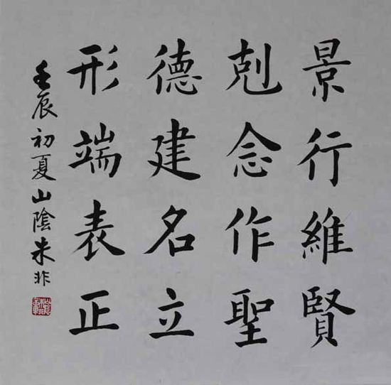 朱非先生 通过吾友康峰去年才得益认识书法家朱非先生,这对自认为熟知书坛百家,掌握艺坛动态的我来说无疑是一种羞辱。 初见朱非老师作品时,深为震撼。字字刚劲有力,既有阳刚之气,又有轻柔之美。细赏朱非的书法,常常有一种难以释怀的感觉,如儒雅之士吟...