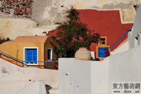 谈到希腊,人们头脑便出现“蔚蓝色的浪漫情怀,海天一色、艳阳高照的纯美自然”。其实希腊并非一片蓝色的世界,那蓝与白的宁静外表下却蕴藏着按捺不住的热情,于是,柠檬黄、蓝紫、朱红,粉红、红褐、橙色,金黄等,如此胆大的颜色搭配饱满而又单纯,对比强烈却又如此和谐,形成别有情调的色彩组合。
